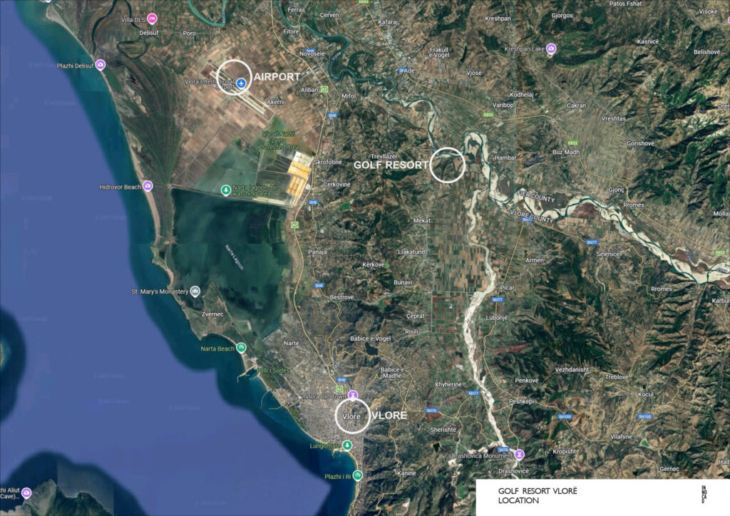 Here, just moments from Vlora Airport yet a world apart from haste, the landscape itself seems to pause — inviting you to do the same. This is a place where nature is not just a backdrop but the heart of the experience. A place where every swing echoes against the hills, every horizon holds the promise of calm, and the river’s song becomes the rhythm of your day.
